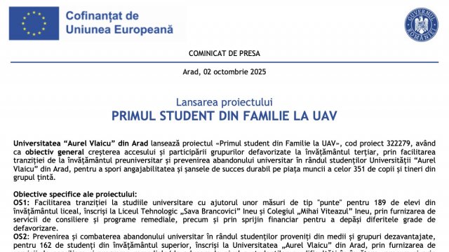 Începutul noului an universitar la Universitatea de Vest „Vasile Goldiș” din Arad a fost marcat de un amestec unic de tradiție, emoție și energie tinerească. De la solemnitatea depunerii de coroane la …