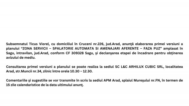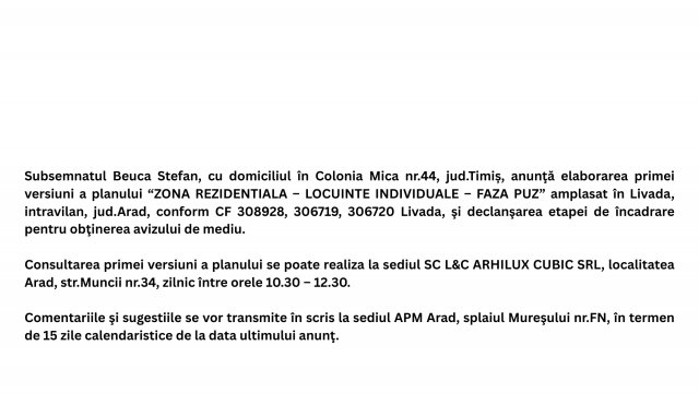 - Certificat de urbanism pentru drumul Mocrea-Chier-Târnova