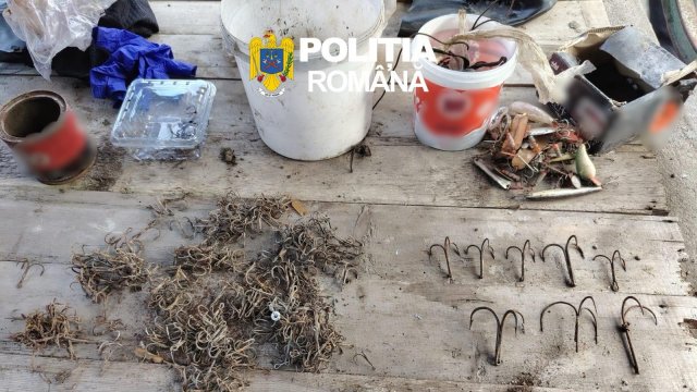 În urma perchezițiilor, polițiștii au descoperit și ridicat peste 350 de ancore cu ghiară triplă, 8 setci, 6 pripoane, o barcă pneumatică cu motor, o armă cu aer comprimat supusă autorizării, 11 cartușe nepercutate calibru 16 mm, precum și peste 10 kilograme de pește din speciile somn și șalău.