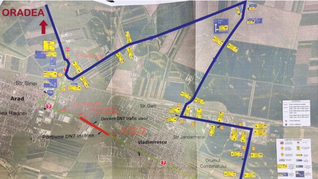 Traficul rutier între Vladimirescu și Arad este deviat, începând de astăzi până la finalul anului viitor. Motivul? Lucrările de modernizare a liniei feroviare Caransebeș – Timișoara – Arad, lotul 4 Ronat Triaj. Măsura este necesară pentru construirea a două pasaje denivelate care vor supratraversa drumul național în zona km 538+600, transmit reprezentanții Direcției Regionale de Drumuri și Poduri Arad.