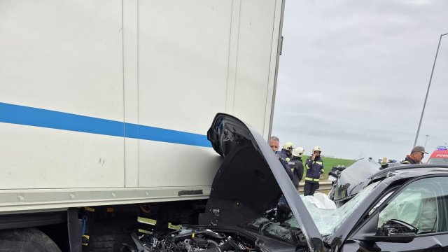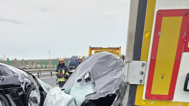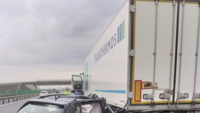 În dimineața zilei de Sâmbătă, 28 Martie, în jurul orei 10,00, un TIR care circula pe Autostrada A1 din direcția Nădlac, în apropiere de localitatea Pecica a acorșat un autoturism Skoda, expediidnu-l într-un alt TIR.