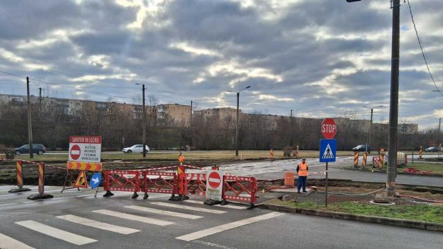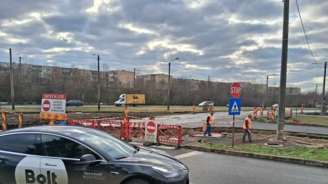 O porțiune a Bulevardului Nicolae Titulescu este impracticabilă. Motivul? Muncitorii care lucrează la liniile de tramvai și-au extins șantierul și pe partea carosabilă pentru a realiza traversările la nivel în dreptul buclei de întoarcere.