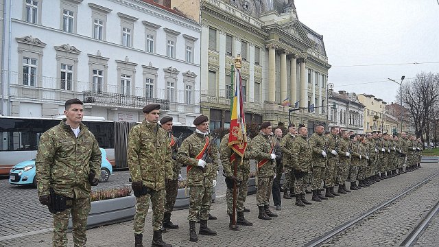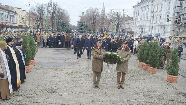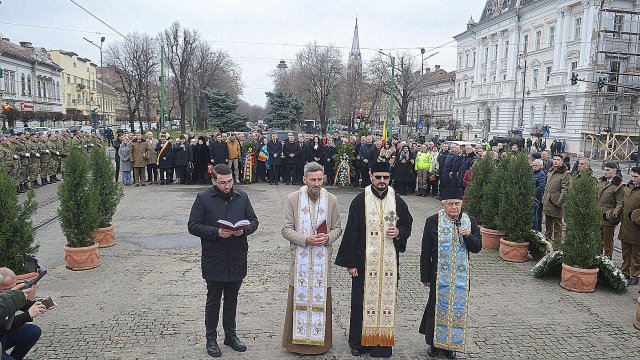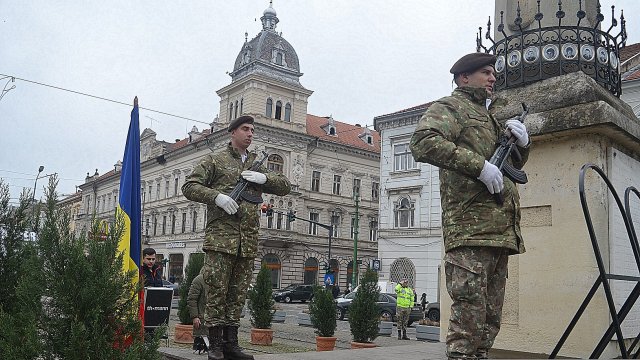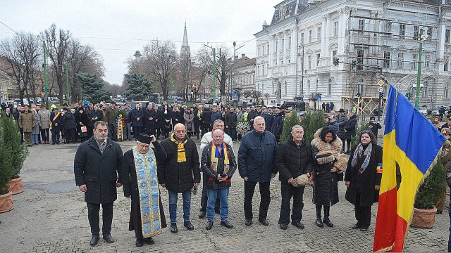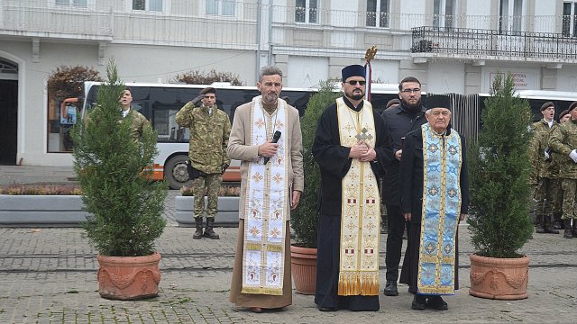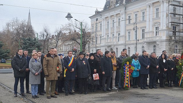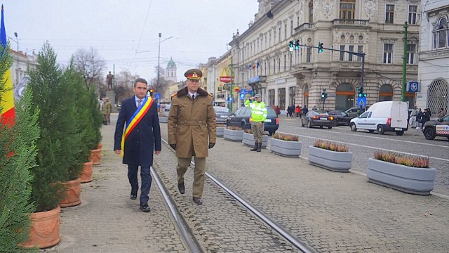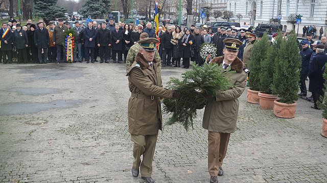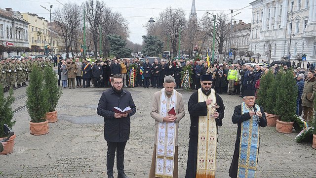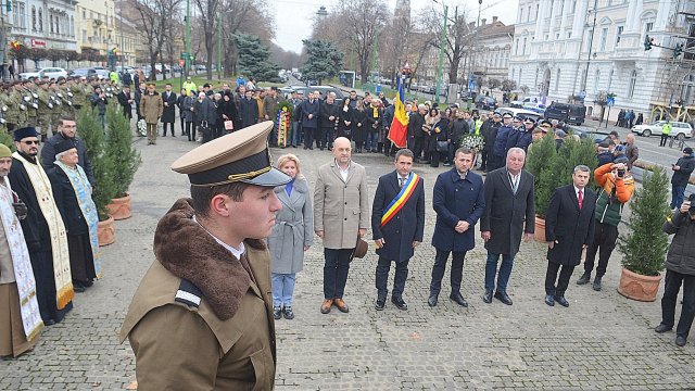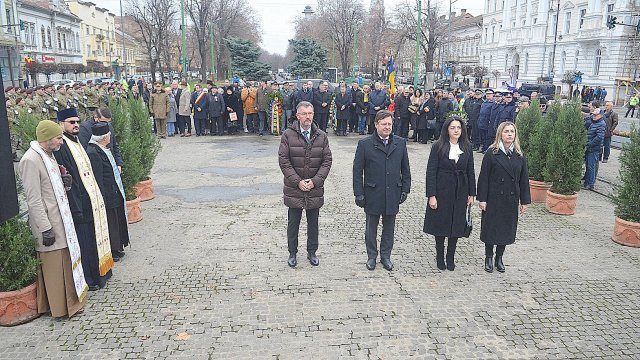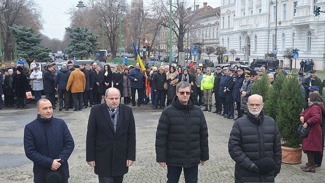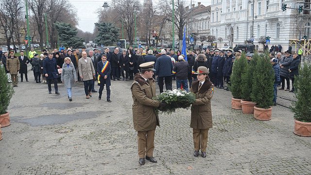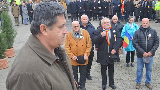 Ceremonia a debutat solemn, cu prezentarea onorului și salutul drapelului de luptă, urmate de intonarea Imnului Național al României. Sunetele cunoscute au răsunat cu o încărcătură emoțională aparte, transformând piața într-un spațiu al reculegerii și al aducerii-aminte.