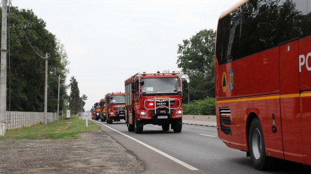 Primul contingent, format din 40 de pompieri și opt mijloace tehnice (două autospeciale de stingere a incendiilor de pădure cu capacitatea de 3.000 litri, o autospecială de 4.000 litri, una de capacitate mare de 10.000 litri, o cisternă de 30.000 litri, o autospecială pentru intervenții rapide de 200 litri, o autospecială de comunicații radio pe unde scurte, un microbuz și un camion cu container), a început astăzi, 30 iulie, deplasarea pe ruta Ciolpani – Giurgiu – Ruse – Sofia – Kulata – Promachonas – Salonic – Katerini – Anthili – Nea Makri, localitate situată în regiunea Attica, la aproximativ 25 km nord-est de Atena.