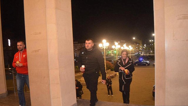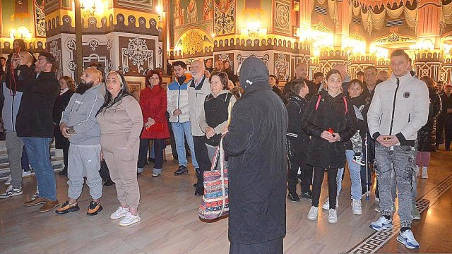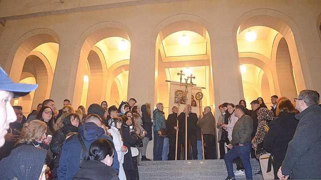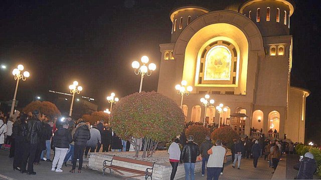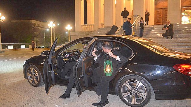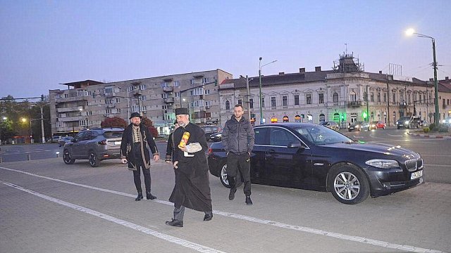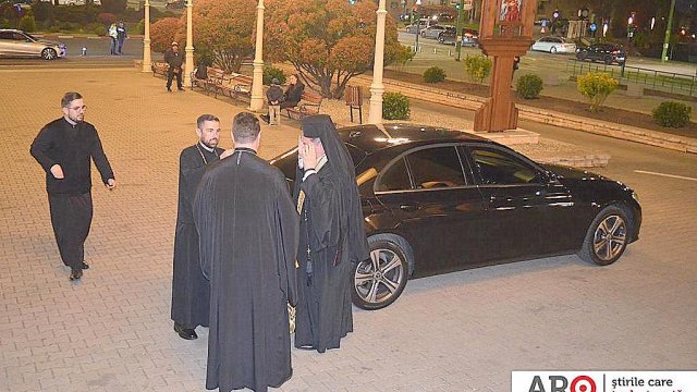 După preluarea Sfintei Lumini de pe Aeroportul Internațional din Arad, reprezentanții arhiepiscopiei și ceilalți membri, au fost întâmpinați de către IPS Părinte Timotei pe platoul din fața Catedralei Arhiepiscopale ,,Sfânta Treime” din Arad.”