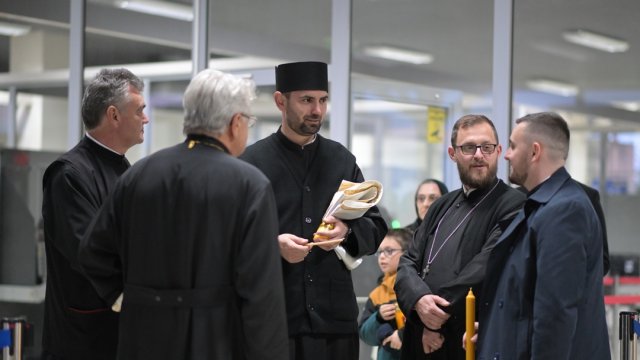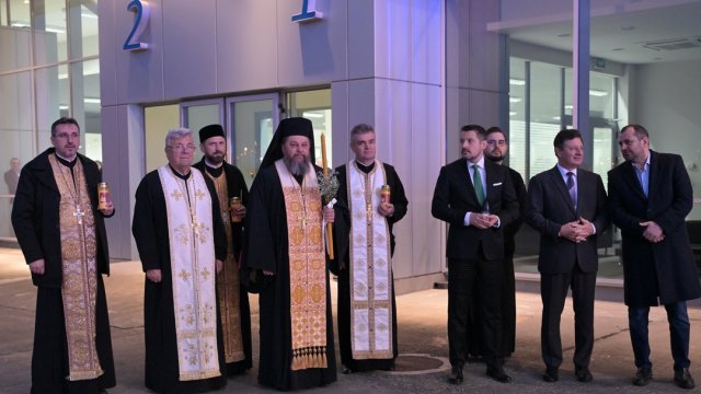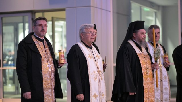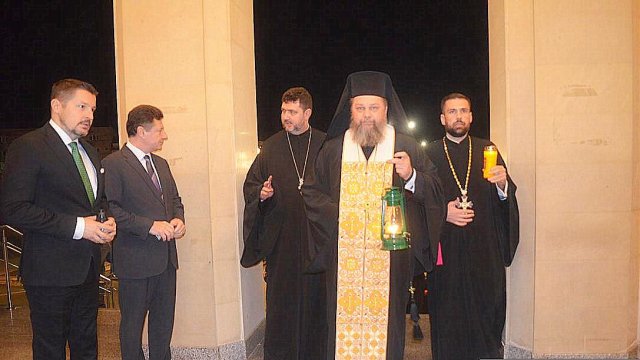 Doi reprezentanți ai Arhiepiscopiei Aradului, părintele Tiberiu Ardelean și părintele Bogdan-Gheorghe Noghiu, consilieri eparhiali, au preluat Sfânta Lumină, sâmbătă seara, de pe Aeroportul Internațional ,,Otopeni”.