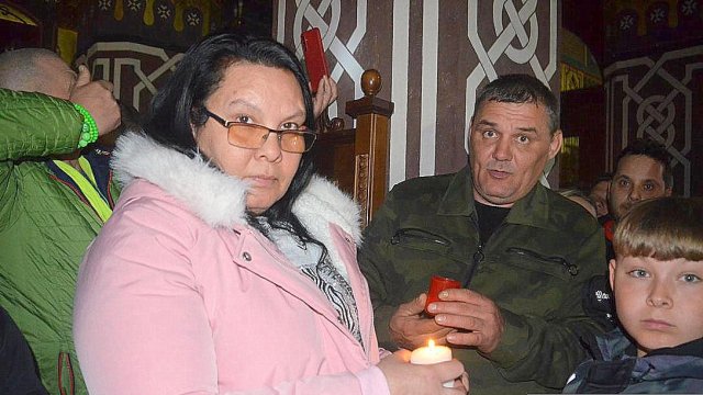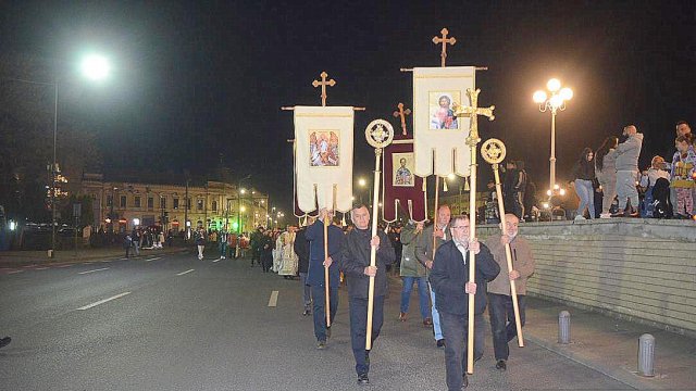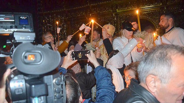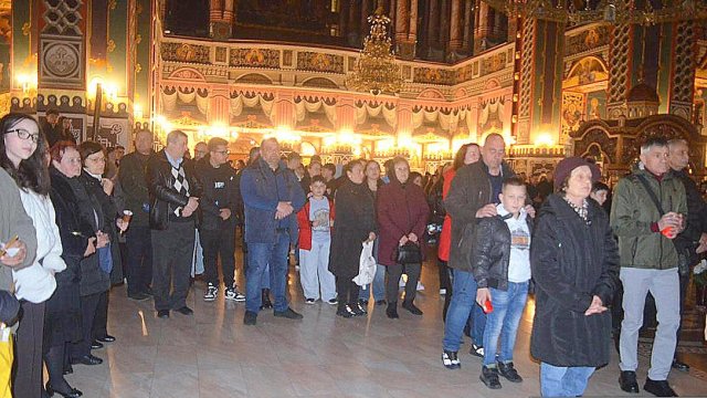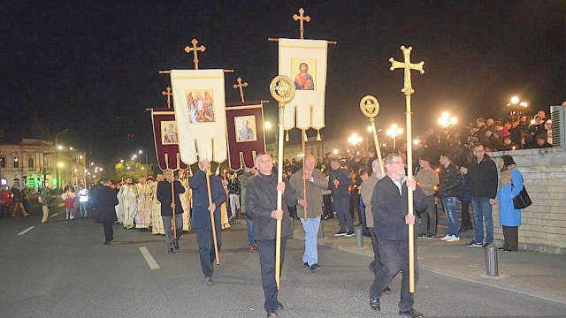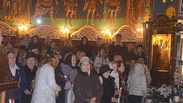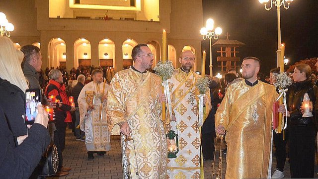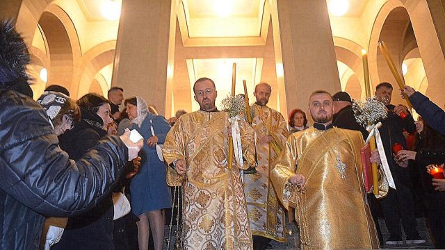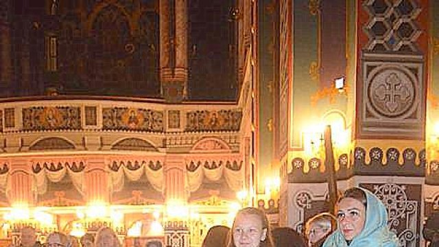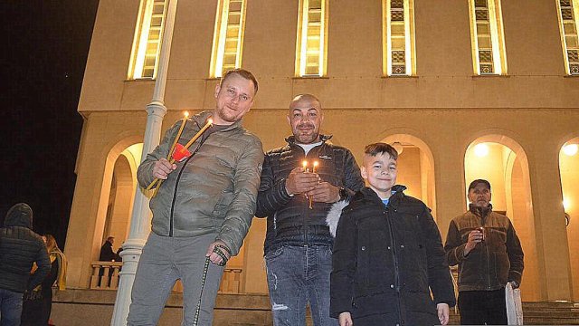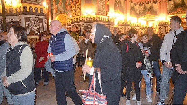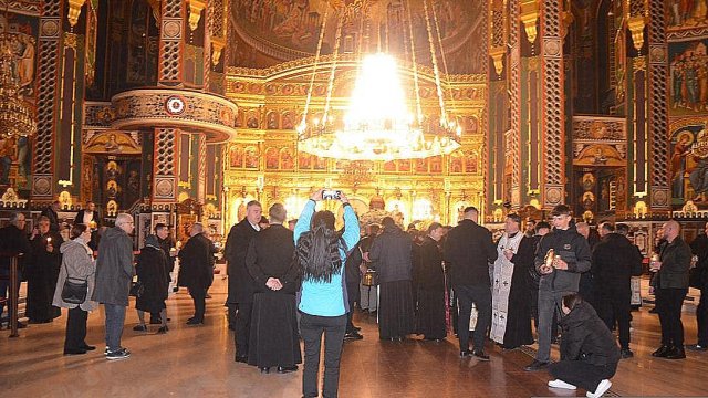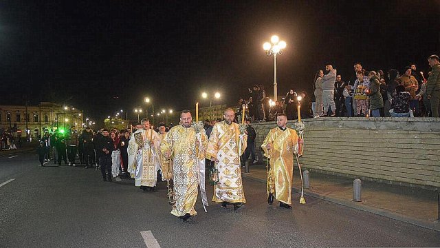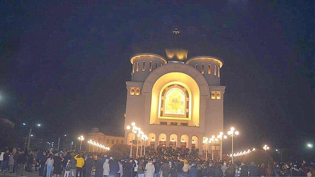 Soborul de preoţi însoţit de credincioşi a înconjurat Catedrala, după care s-a oficiat slujba Învierii, în timpul căreia s-a citit Sfânta Evanghelie şi s-a intonat „Hristos A Înviat din morţi/Cu moartea pe moarte Călcând/Şi celor din morminte/Viaţă dăruindu-le“.