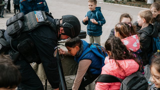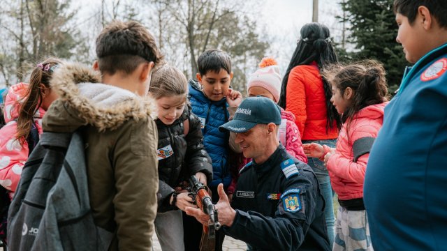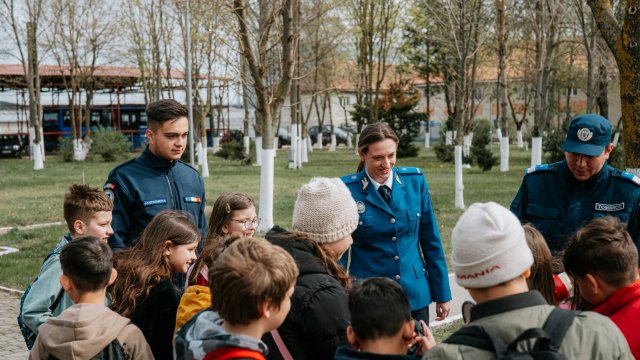 Activitățile au continuat cu vizitarea unității, unde elevii au avut ocazia să descopere aspecte din istoria Inspectoratului de Jandarmi Județean Arad, să interacționeze cu jandarmii și să exploreze atelierele și echipamentele din dotare. Fiecare mijloc tehnic prezentat a stârnit interesul copiilor, generând numeroase întrebări la care jandarmii au răspuns cu deschidere.