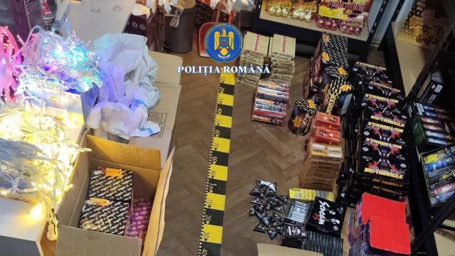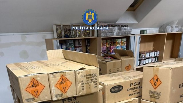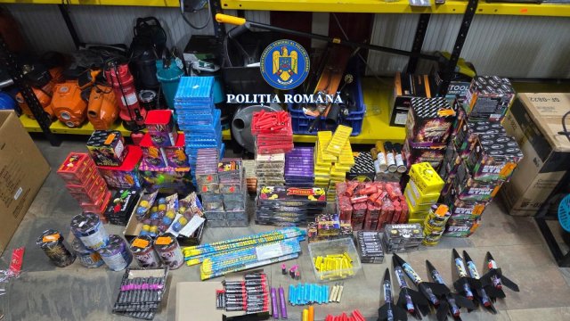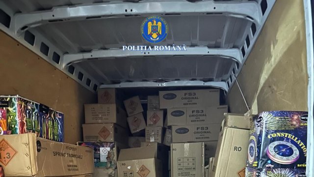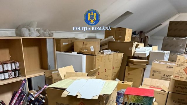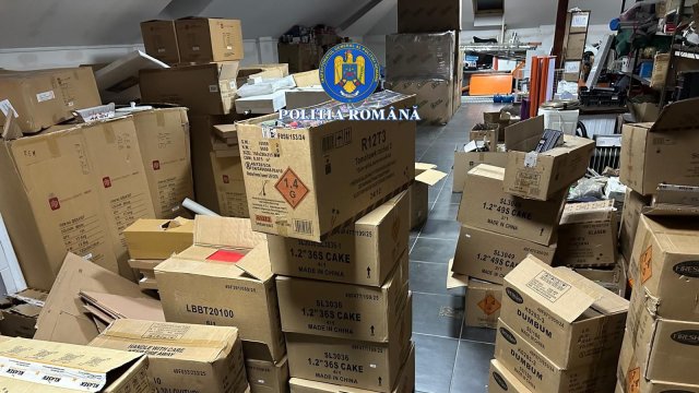 Vine, vine Moș Crăciun: peste zece tone de material pirotehnic și o persoană reținută de polițiștii Serviciului Arme, Explozivi și Substanțe Periculoase (FOTO)